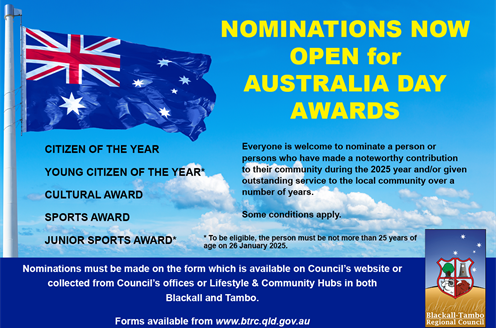Everyone is welcome to nominate a person or persons who have made a noteworthy contribution to their community for 2025 and/or given outstanding contributions to the local community over a number of years .Some conditions apply